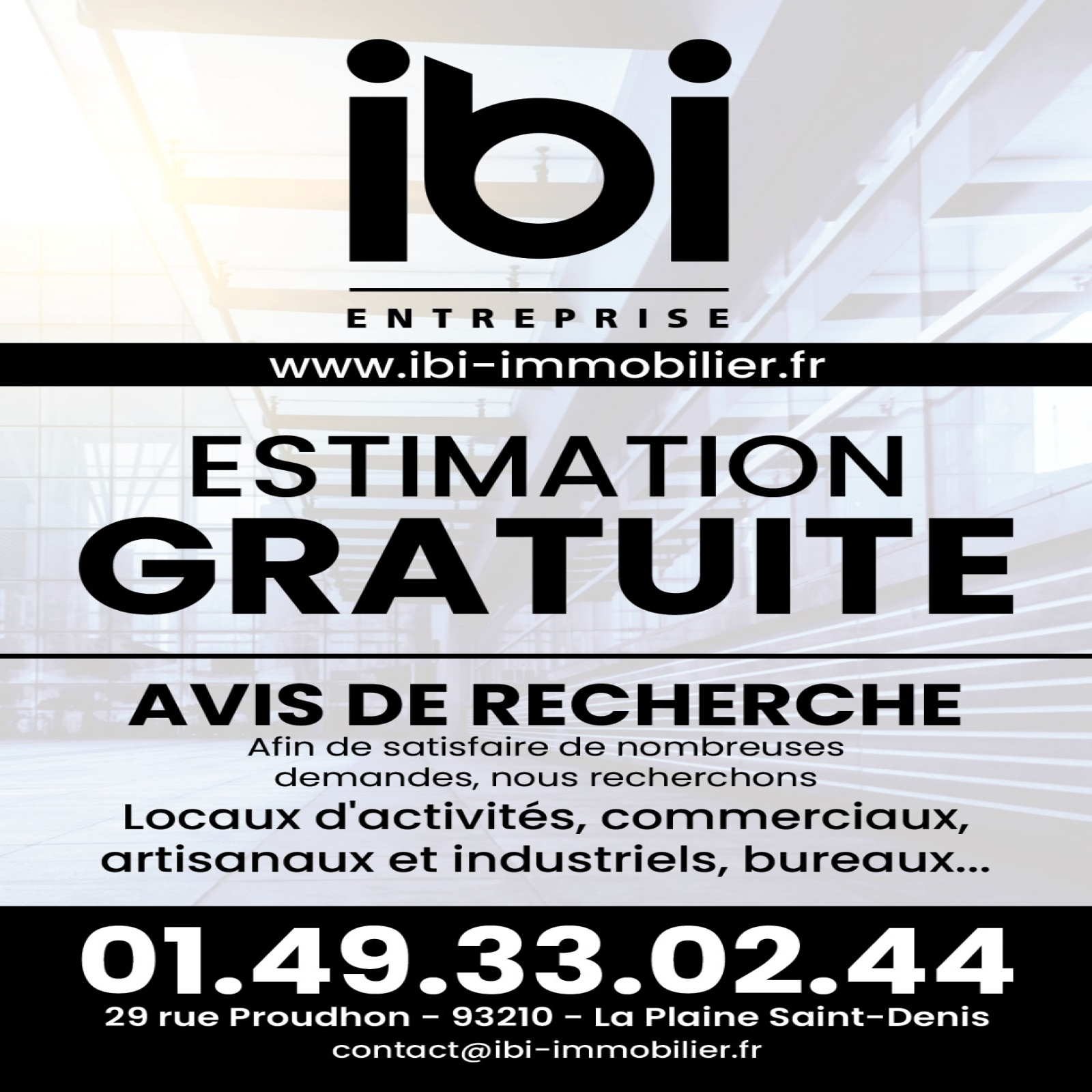 Pour toute information complémentaire ou pour planifier une visite, contactez le cabinet IBI ENTREPRISE.