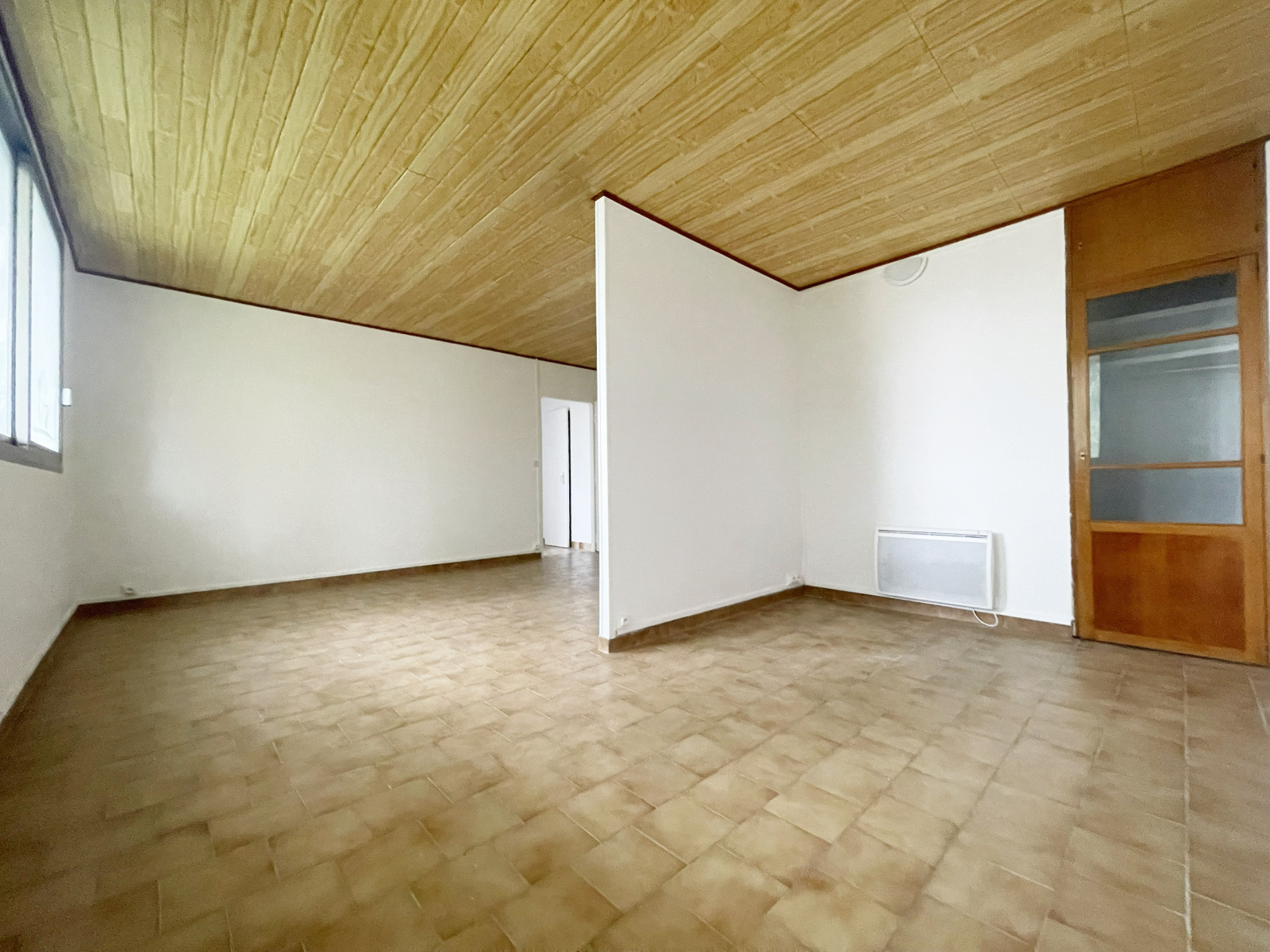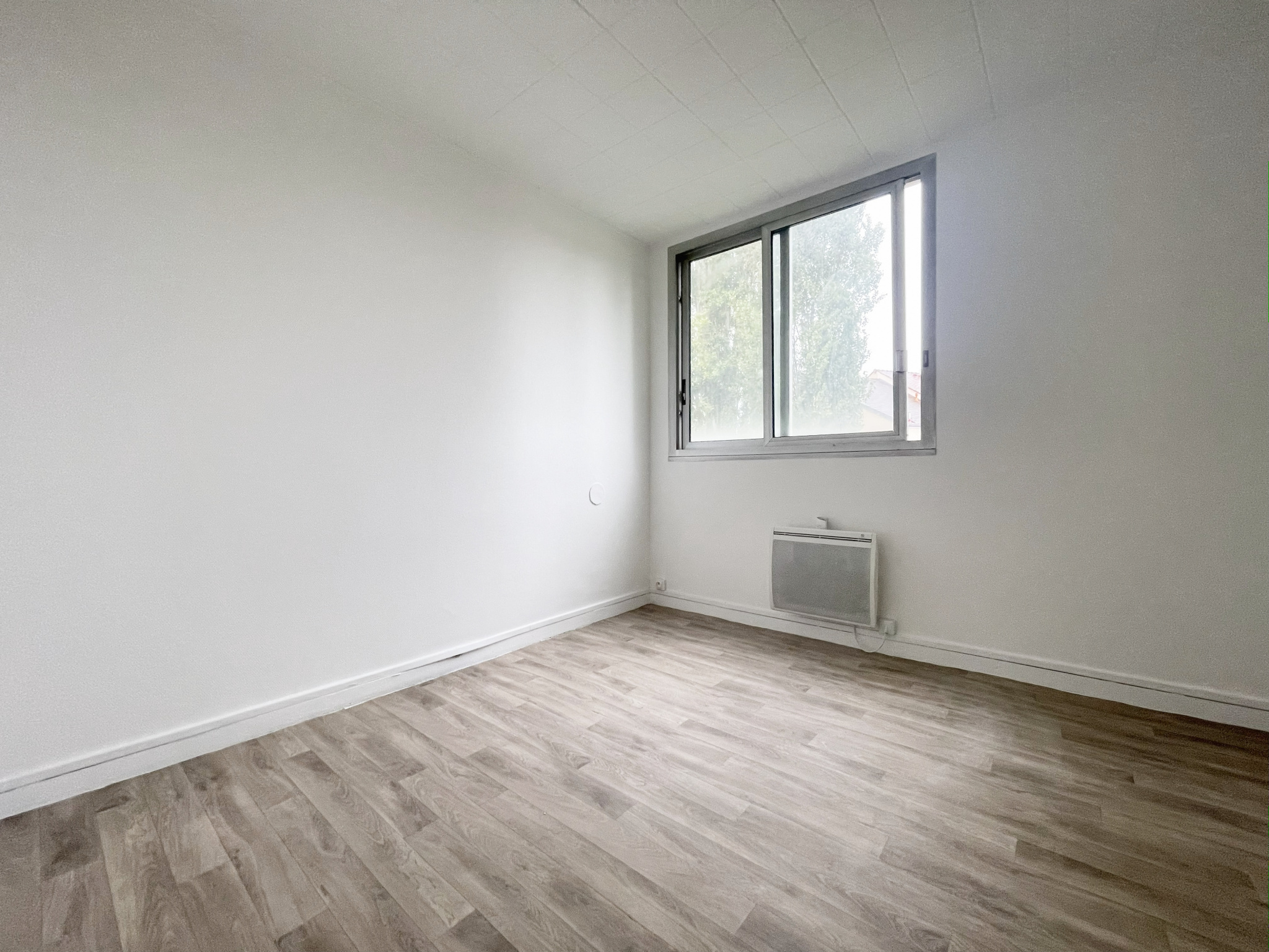 L'appartement est composé d'une entrée, un double-séjour, une cuisine séparée, deux chambres, une salle d'eau, un wc séparé, ainsi qu'un débarras.