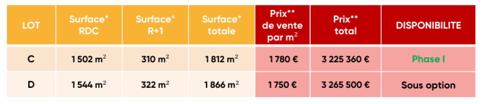 - Surface R+1 (Mezzanine) : 322 m².