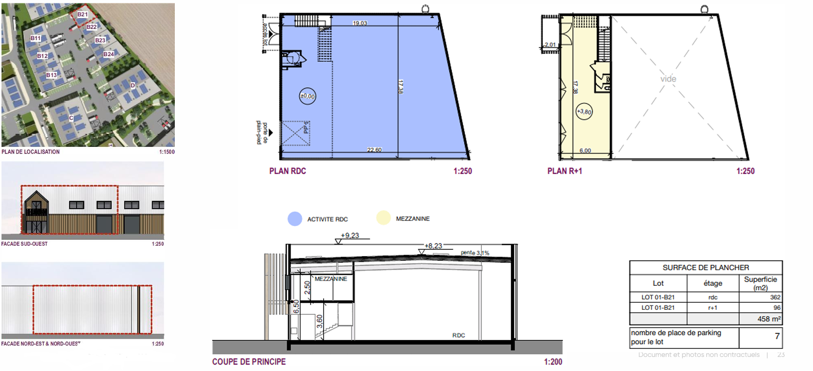 Infrastructures : Voirie lourde pour les aires de manœuvre et de circulation, voirie légère pour les stationnements.